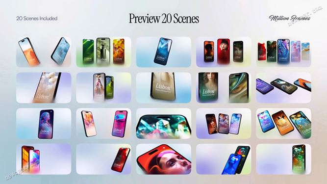 20组时尚明亮的手机屏幕展示样机场景AE模板